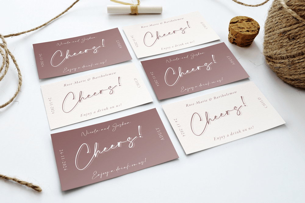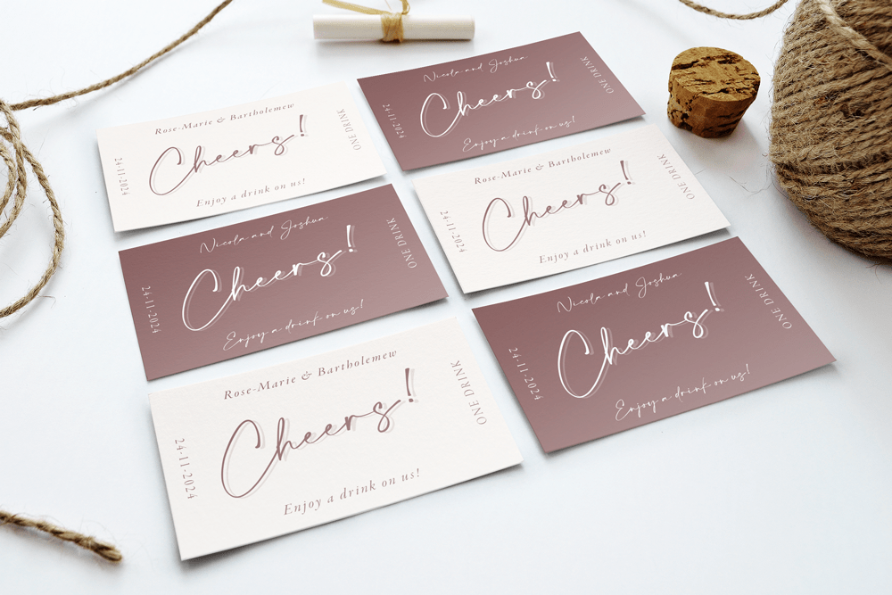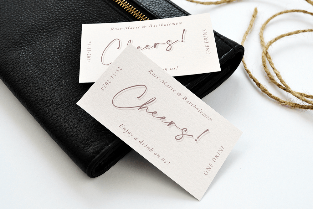 Add a dash of fun to your wedding with our beautiful personalised drink tokens. Ideal for signature cocktails, bar tabs, or a round on the happy couple!