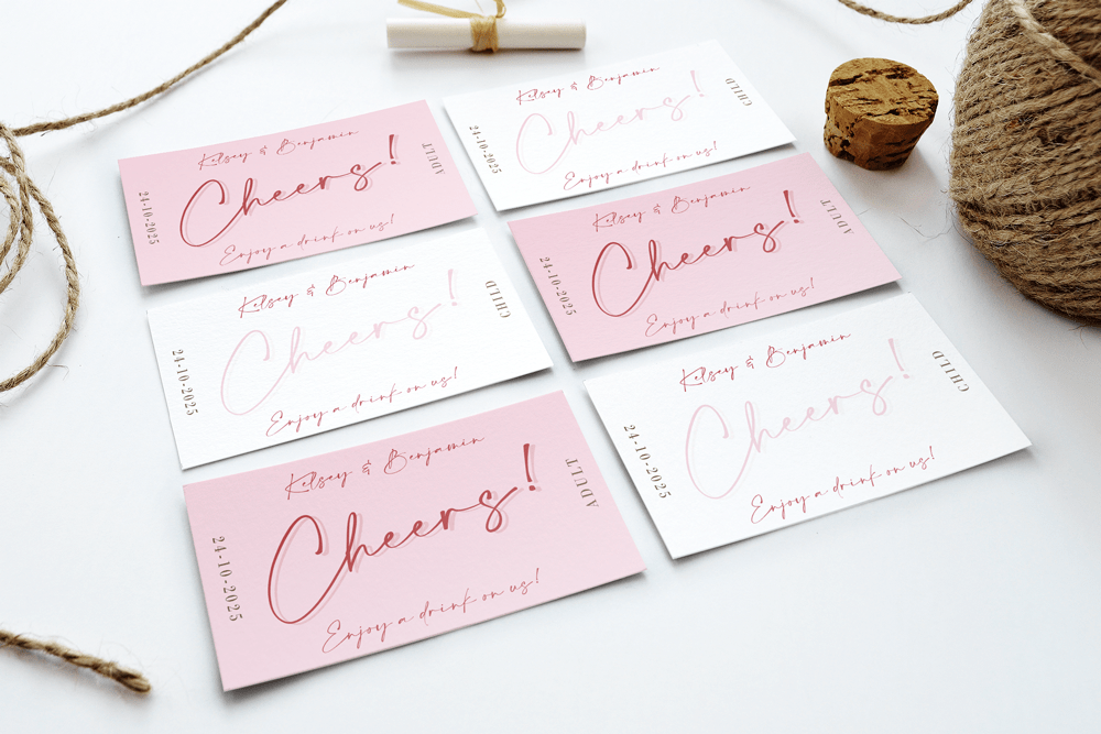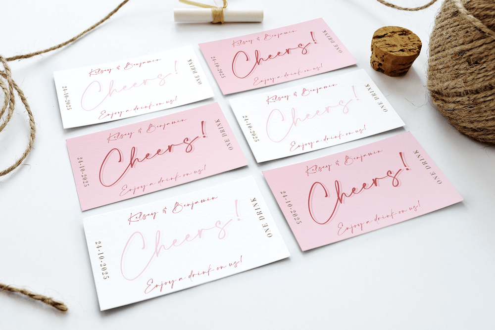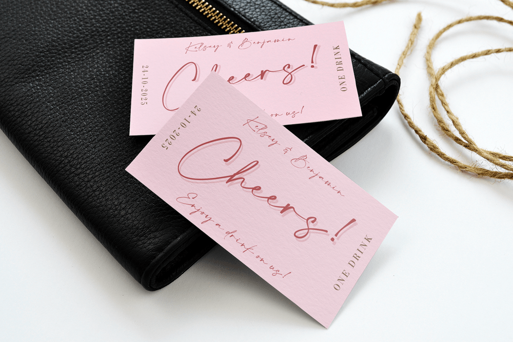 Add a dash of fun to your wedding with our beautiful personalised drink tokens. Ideal for signature cocktails, bar tabs, or a round on the happy couple!