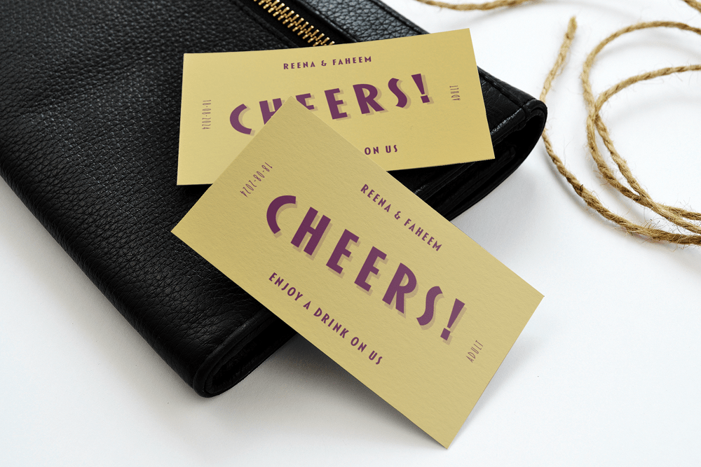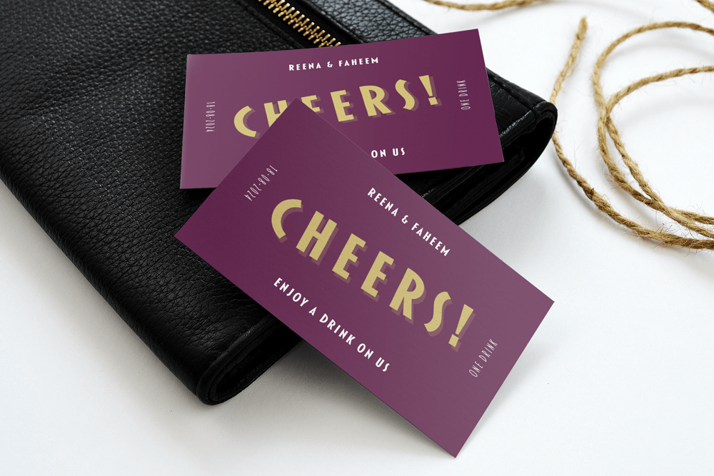 Add a dash of fun to your wedding with our beautiful personalised drink tokens. Ideal for signature cocktails, bar tabs, or a round on the happy couple!