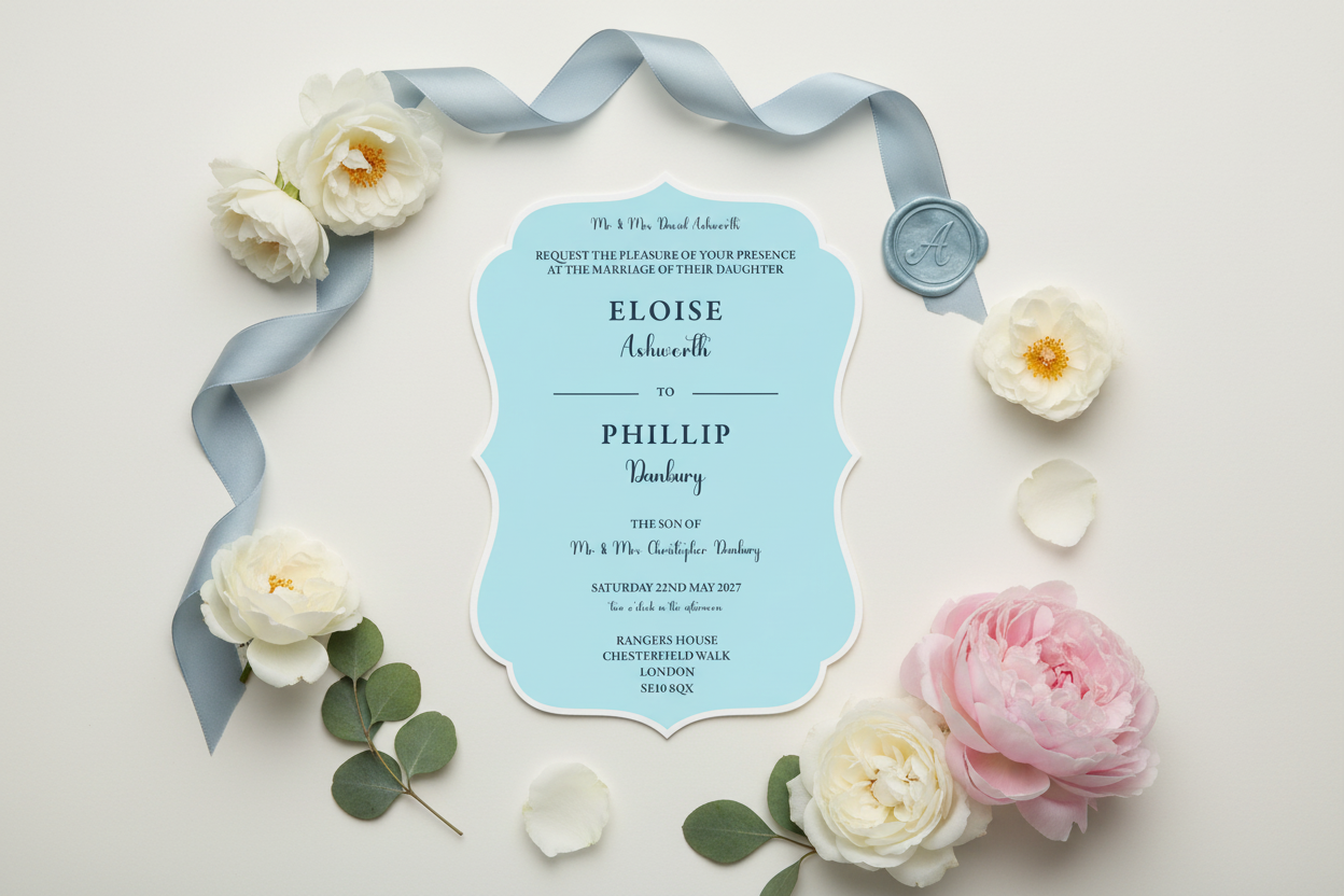 Each invitation is professionally printed with your bespoke wedding details, ready to send to your guests. Coordinating envelopes, ribbons, and wax seals available separately to complete your stationery suite.
