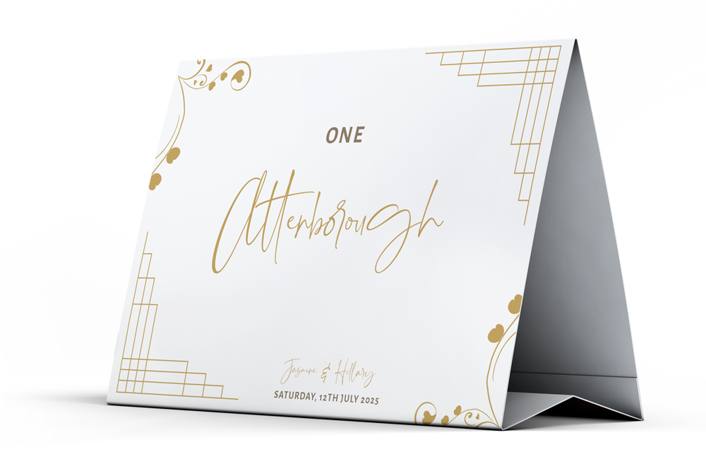 Guide your guests with style using our Table Number with Name signs. Designed to coordinate perfectly with your wedding stationery, they help guests find their seats easily while adding a beautifully polished touch to every table.